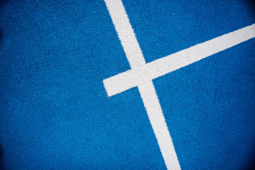 AllCourt- oder Hallenschuhe mit Profil sind geeignet.